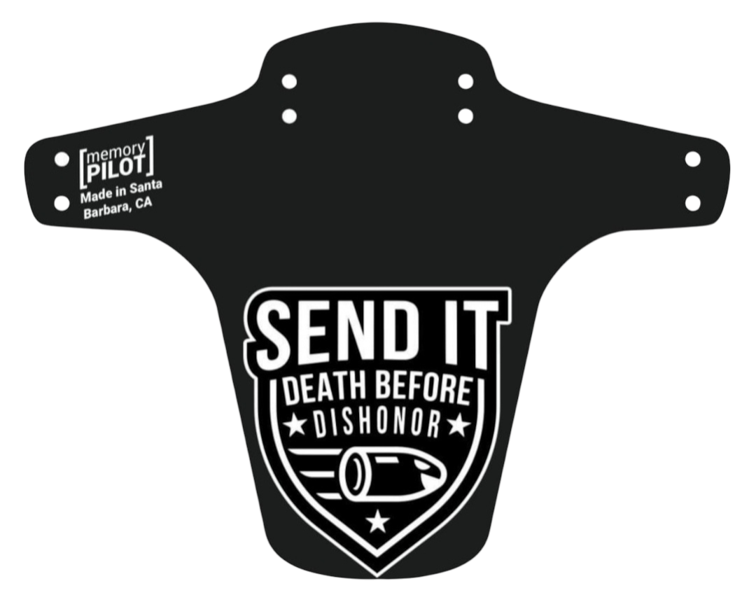 Send it Death before Dishonor front fender made by Memory Pilot. Keeping you clean while Sending it.