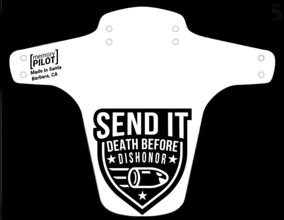 Send it Death before Dishonor front fender made by Memory Pilot. Keeping you clean while Sending it.